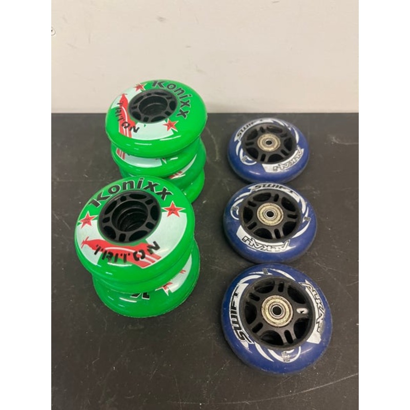 SpecificationsCategoryHockey > Inline, Roller & Street > WheelsBrandOtherCondition UsedQuantity1 available|||Seller DescriptionNew Set Konixx RW Triton Roller Hockey Wheels Green 82A 4 x 76mm 4x 80mm +3 USED Alkali Swift 80mm 82A w/bearings Our i