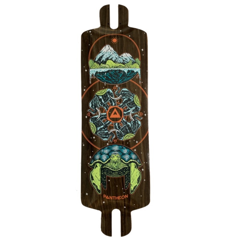 The Pantheon Pranayama is a meticulously fitted distance and commuting longboard. The board was designed to fit perfectly with 85mm wheels and street trucks. If youre focused on the ease of the journey, whether a beginner or advanced rider, the Pranayama will easily get you wherever youre going with as little effort as possible over just about any distance. No other longboard features this low of a ride height with as big of wheels. Period.