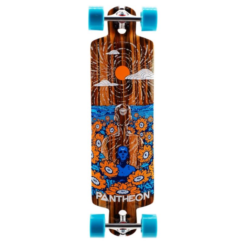The Pantheon Trip is back with a sexy new graphic, unique applewood veneer, and a lighter weight design construction. We dropped the top veneer in favor of lighter weight construction and dyed the top fiberglass layer black for a sweet undercover look that screams quality.