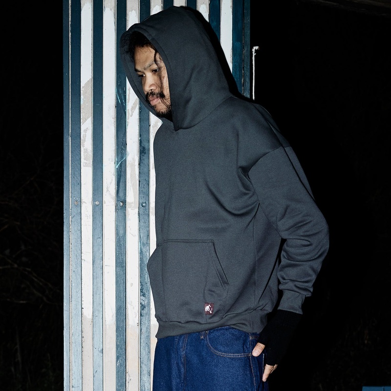 Australian Made Hood from the Pass~Port Australian Manufactured Range #4. The Pass~Port hoodie is made from a heavy weight poly cotton fleece and features a woven label on pocket, finishing in a boxy fit.