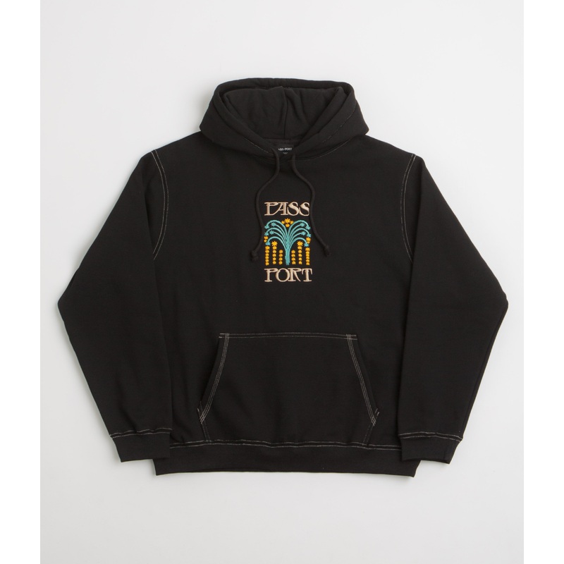 DescriptionPass Port Roman Candle HoodiePass Port Roman Candle Hoodie in Black. Regular fitting and made from a cotton-polyester blend, this block tone Pass Port hoodie is designed with an adjustable drawcord hood. Finished in black with contrast stitching