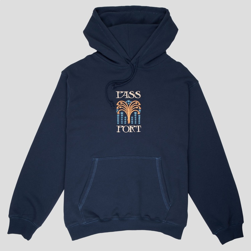Pass~Port Roman Candle Hoodie in navy is part of range#45. The Pass~Port hood is made from a polyester / cotton blend and features direct embroidery on front, which is finished in the classic Pass~Port hoodie fit.Relaxed fitDirect embroidered front and con