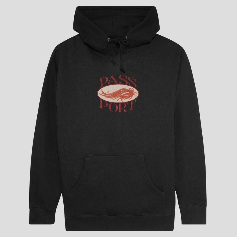 Pass-Port Sunspot hoodie from Range #44. This Pass-Port jumper is crafted from a cotton-polyester blend and features a direct embroidery and felt applique on the front, finished in the classic Pass-Port hoodie fit.