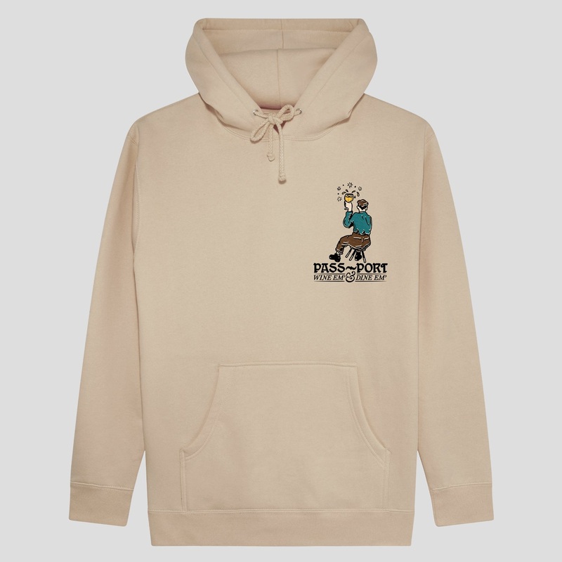 Pass~Port Wine Em’ Hoodie in sand from range #42. ThePass~Port jumper is made from a cotton polyester blend and features screen print on front & back which is finished in the classic Pass~Port hood fit.