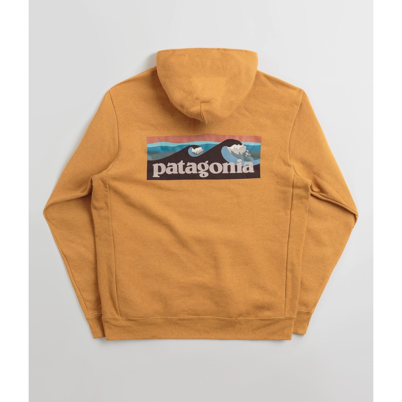 DescriptionPatagonia Boardshort Logo Uprisal HoodiePatagonia Boardshort Logo Uprisal Hoodie in Dried Mango. Made from 100% recycled knitted fleece, this regular fitting Patagonia hoodie is Fair Trade Certified with a drawstring adjustable hood. Featuring r