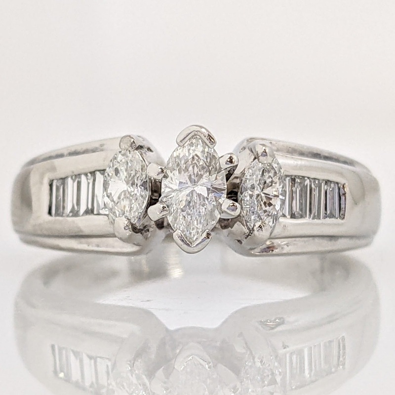 PLATINUM .62 CARAT TOTAL WEIGHT SI2 F DIAMOND MARQUISE (3) WITH BAGUETTE (8) ESTATE RING 6.1 GRAMS