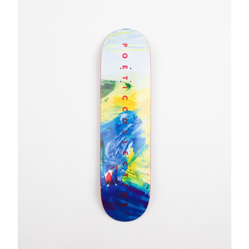 Poetic Collective Expression #1 High Concave Deck in Blue and 8.25″. Inspired by abstract artwork, this new season Poetic Collective deck is made from 7-ply maple with a high concave construction. Styled to a width of 8.25 with an assorted wood veneer topside, this creative Poetic Collective deck is finished with a multicoloured Poetic Collective printed underside featuring acrylic and typography on drawing paper.