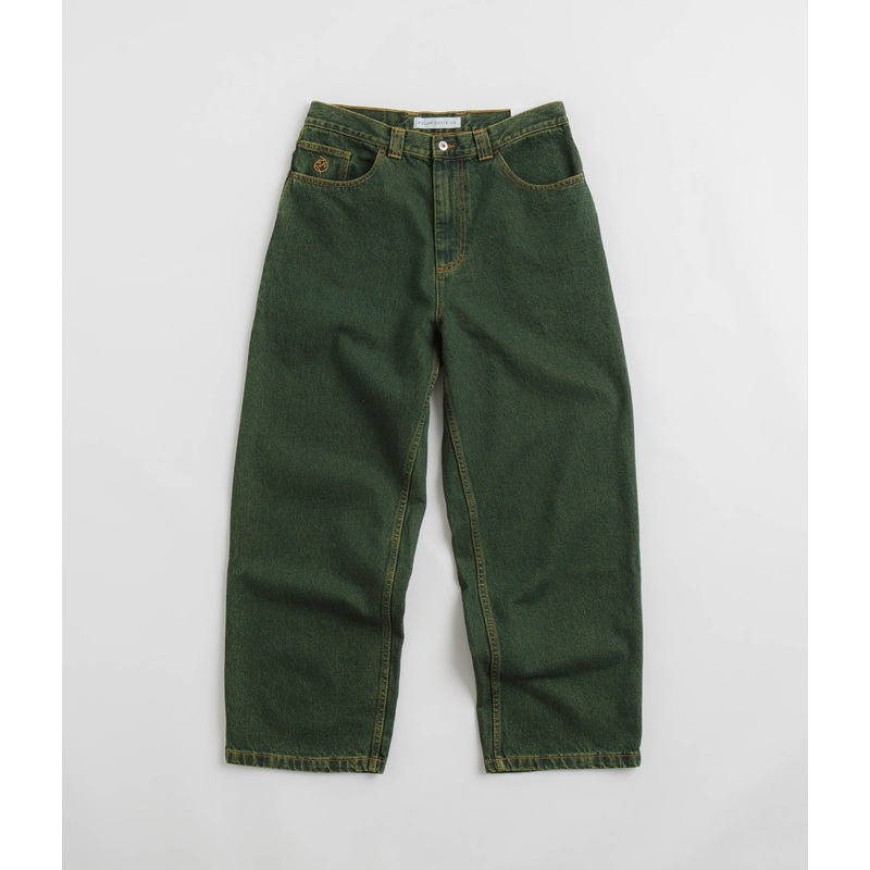DescriptionPolar Big Boy JeansPolar Big Boy Jeans in Chartreuse and Blue. Baggy fitting with a tapered leg, these Polar jeans are designed with a classic belt loop waistband and a single button secured zipper fly. Featuring contrast stitching and four clas