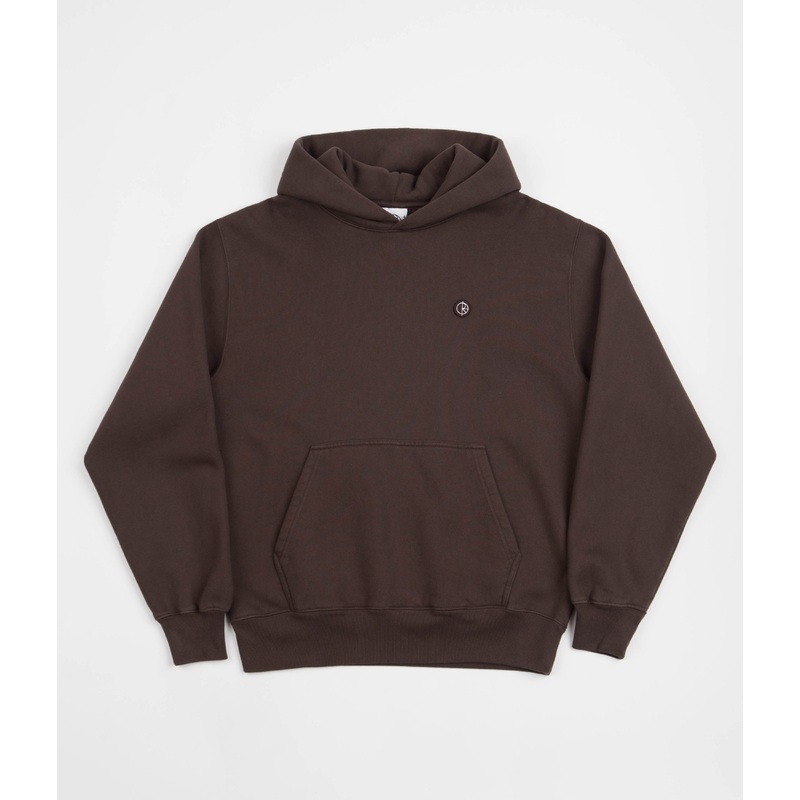 Polar Patch Hoodie in Chocolate. Loose fitting with a heavyweight 100% cotton fleece construction, this Polar hoodie arrives as part of the brands Fall 22 collection. Featuring dropped shoulders, cuffed sleeves, a woven elastic hemline and a split panel hood, this brown Polar hoodie is finished with a dual entry kangaroo pocket and an embroidered circular stroke left chest logo.
