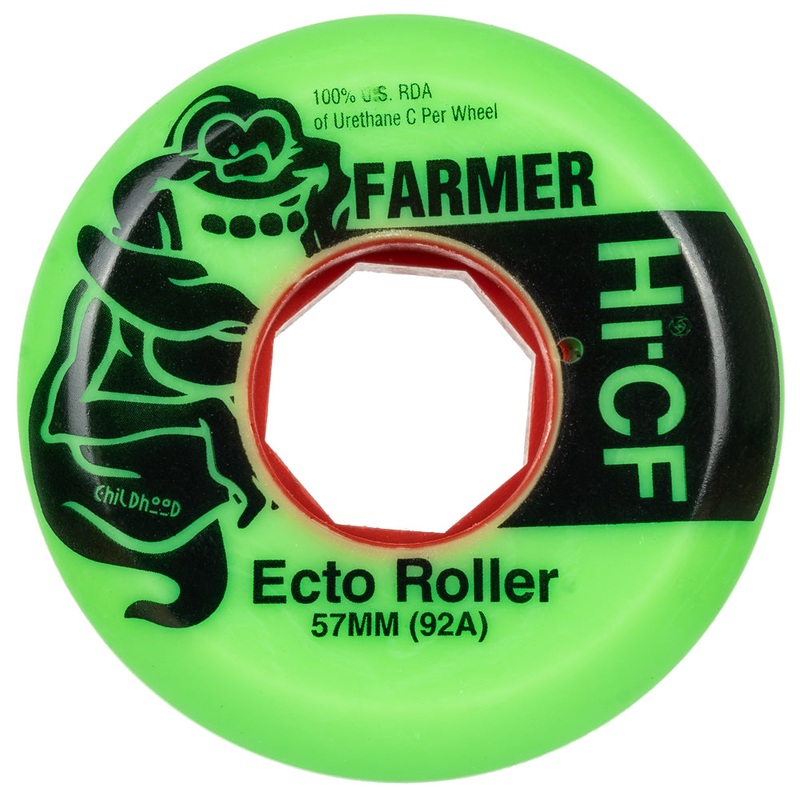 Details Hit the streets with the Chris Farmer Childhood 57mm Ecto Roller wheel!This retro-inspired wheel comes in a vibrant neon green and a square-cut design.Features Size: 57mm Durometer: 92a Profile: Square-cut Colour: Neon Green Packaging: Sold in 4 pa