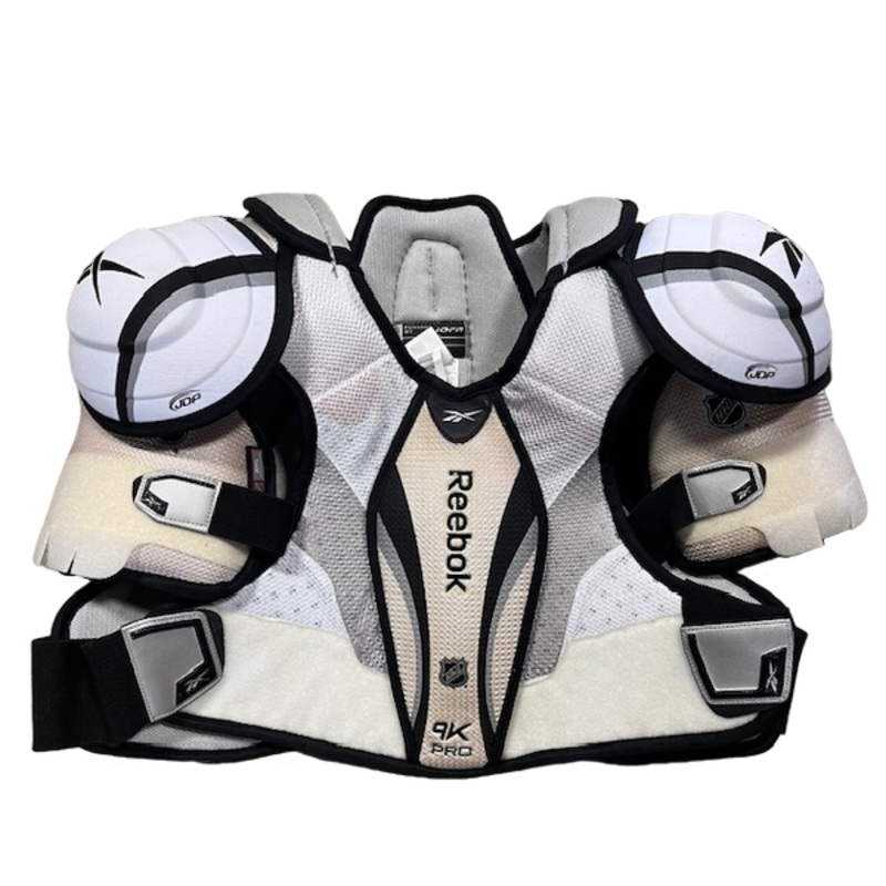 SpecificationsCategoryHockey > Protective > Shoulder PadsBrandReebokModel9KSize XLAge Group SeniorPro Stock Pro StockCondition UsedQuantity1 available|||Seller DescriptionReebok 9K - Used Pro Stock Shoulder Pad These Reebok 9K Shoulder Pads are in ex