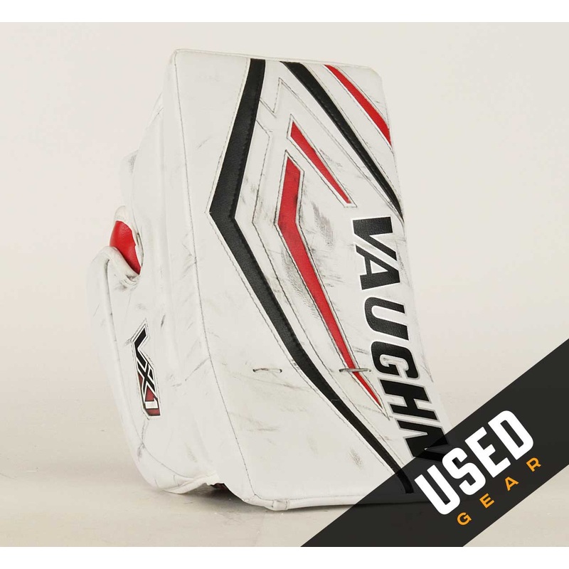 This blocker hass been lightly used. Brand Vaughn SKU: UPC: Team Chicago Blackhawks Player Petr Mrazek Primary Color White Model Velocity VX1 Hand Regular