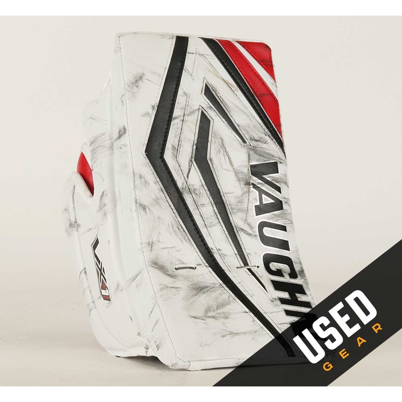 This blocker hass been used and it is a practice blocker. Brand Vaughn SKU: UPC: Team Chicago Blackhawks Player Petr Mrazek Primary Color White Model Velocity VX1 Hand Regular