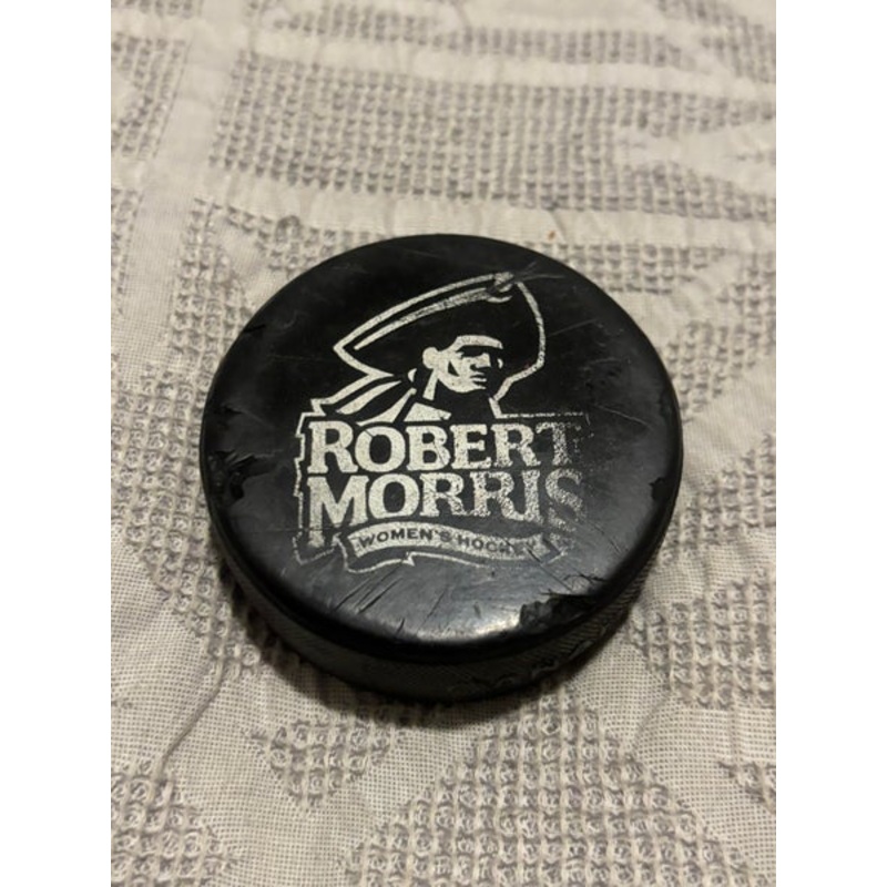 SpecificationsCategoryHockey > Training, Accessories, & Other > Pucks & BallsBrandOtherCondition UsedQuantity1 available|||Seller DescriptionUsed Robert Morris Colonials NCAA D1 Hockey Official Hockey Puck Puck is worn from usage. Box: H4