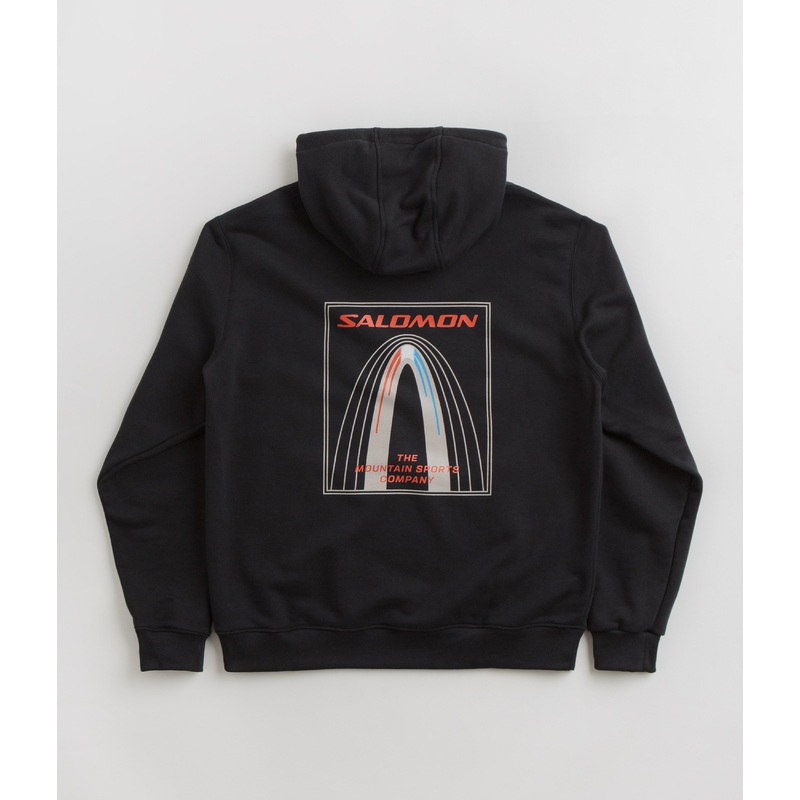 DescriptionSalomon Bow Graphic HoodieSalomon Bow Graphic Hoodie in Deep Black. Tailored to a regular fitting from a cotton-polyester blend, this Salomon hoodie is designed with a triple panel drawstring hood with rubber lace aglets. Featuring ribbed cuffs