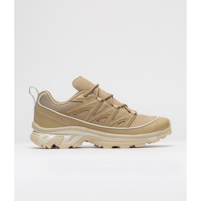 Salomon XT-6 Expanse LTR Shoes in Kelp, Safari and Almond Milk. Archive influenced with a mixed leather and textile upper, this Salomon XT-6 Expanse LTR is styled with an Agile Chassis and a technical Speed Lacing fastening. Featuring EVA cushioning, Sensifit cradling and OrthoLite insoles, this khaki beige Salomon XT-6 Expanse LTR is finished with woven heel pulls and with a Contagrip rubber outsole.