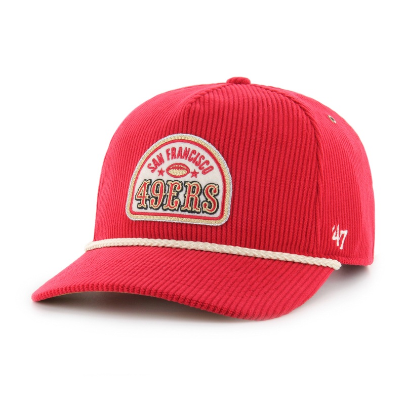 We partnered again with Stoney Clover Lane for an expanded assortment of unique NFL styles created with luxe fabrics and adorned with decorative finishes. The SCL Touch Down 47 HITCH RF is a pinched-crown snapback made with premium wide wale corduroy featu