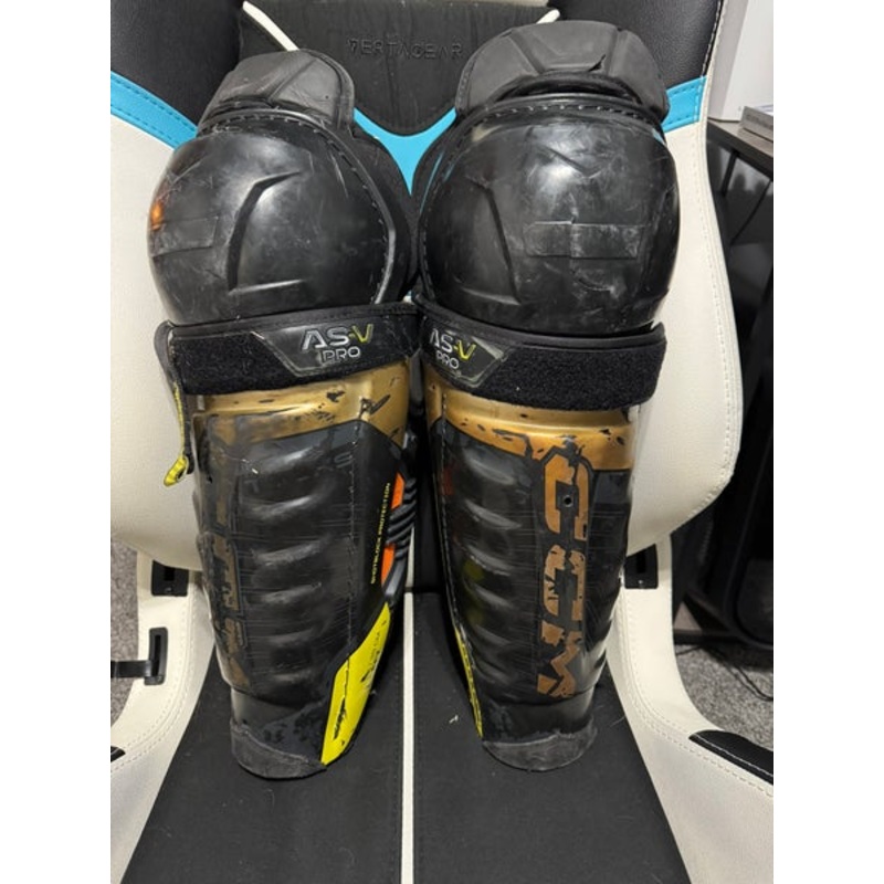 SpecificationsCategoryHockey > Protective > Shin PadsBrandCCMModelASV ProAge Group SeniorCondition UsedSize 15"Pro Stock RetailQuantity1 available|||Seller DescriptionUsed CCM ASV V Pro 15 shin guards. I know these look bad but they still have l