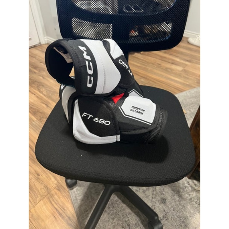SpecificationsCategoryHockey > Protective > Elbow PadsBrandCCMModelJetspeed FT680Size LargeCondition NewPro Stock RetailAge Group SeniorQuantity1 available|||Seller DescriptionBrand new just been sitting in extra gear room. Make an offer, just lookin