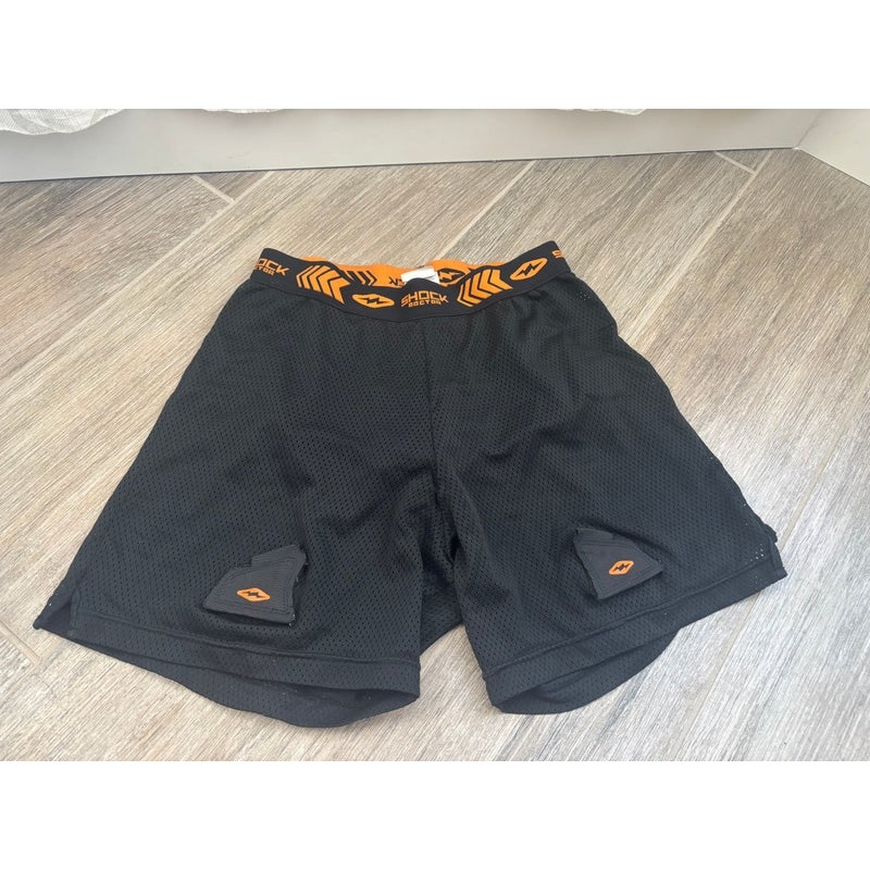 SpecificationsCategoryHockey > Protective > Neck Guards, Wrist Guards, Padded Shirts & OtherBrandShock DoctorAge Group SeniorColor BlackCondition UsedQuantity1 available|||Seller DescriptionMens small Shock Doctor cup shorts with cup. These are i