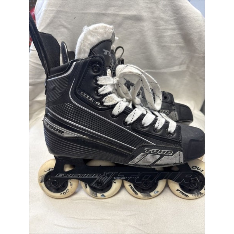 SpecificationsCategoryHockey > Inline, Roller & Street > Inline SkatesBrandTourModelCode 5Condition UsedAge Group SeniorSkate Size 5Skate Width D&R (Regular)Quantity1 available|||Seller DescriptionThe Senior Size 6 TOUR CODE 5 Inline Skates a