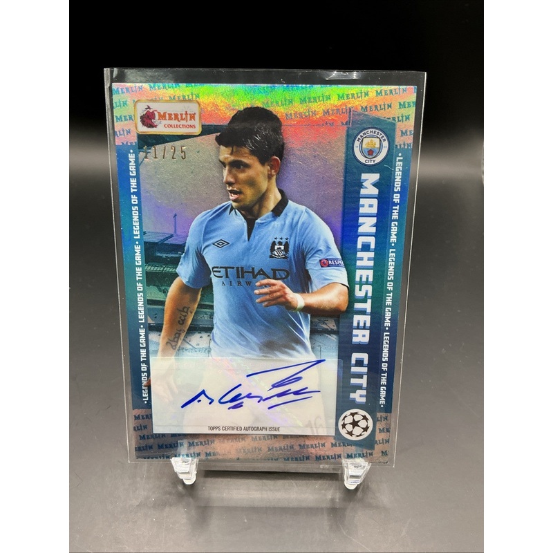 Sergio Aguero 2023-24 Merlin Heritage UEFA Legends Of The Game Auto Blue SSP /25