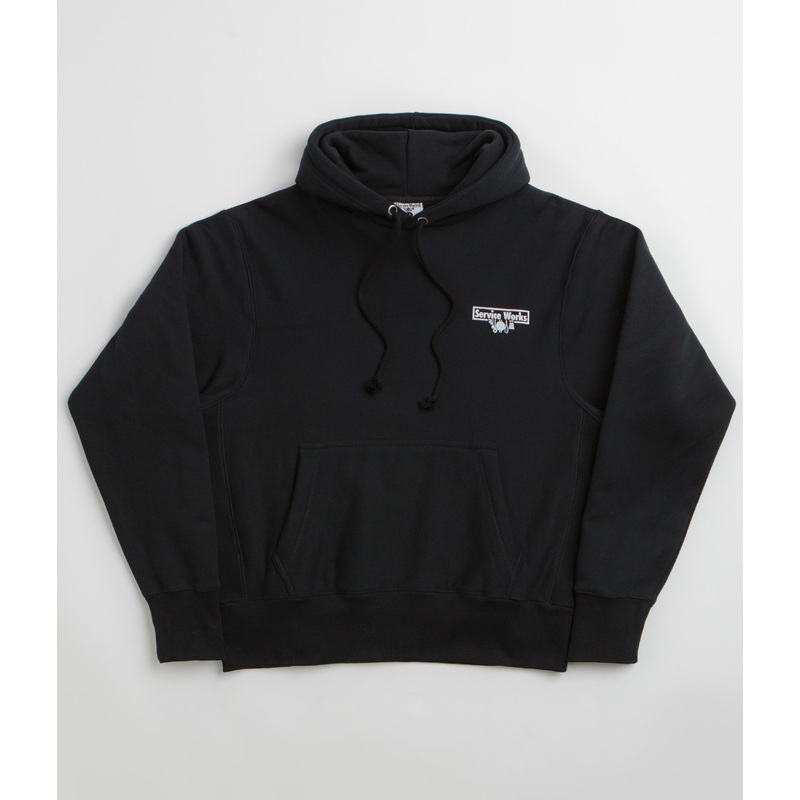 DescriptionService Works Trademark HoodieService Works Trademark Hoodie in Black. Regular fitting and made from 100% heavyweight cotton, this Service Works hoodie is designed with an adjustable drawstring hood. Featuring a kangaroo front pocket and ribbed