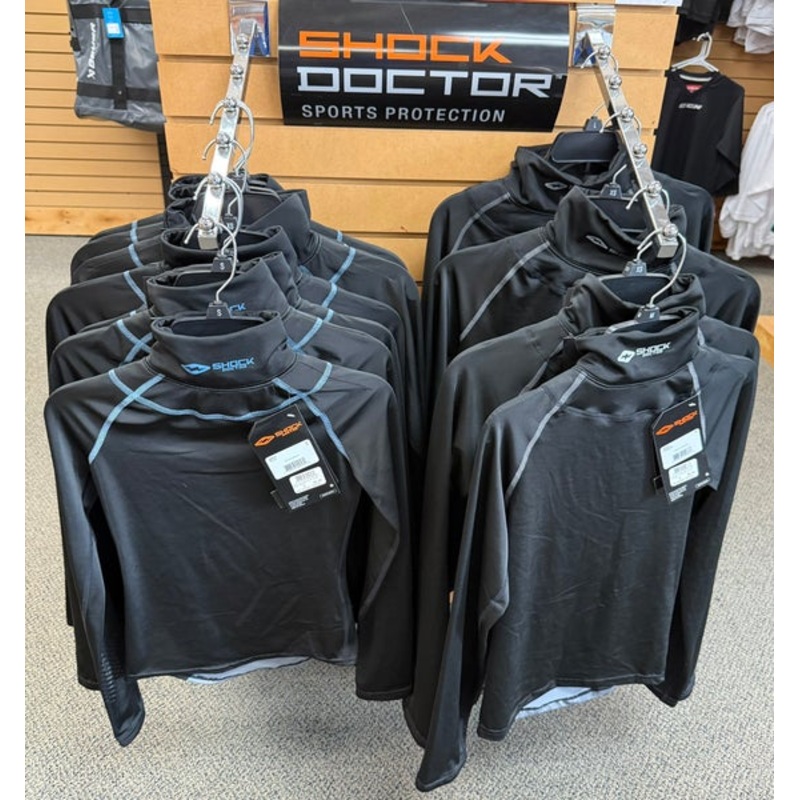 SpecificationsCategoryHockey > Training, Accessories, & Other > Neck Guards, Wrist Guards, Padded Shirts & OtherBrandShock DoctorCondition NewAge Group SeniorColor BlackQuantity1 available|||Seller DescriptionShock Doctor Neck Protection LS B