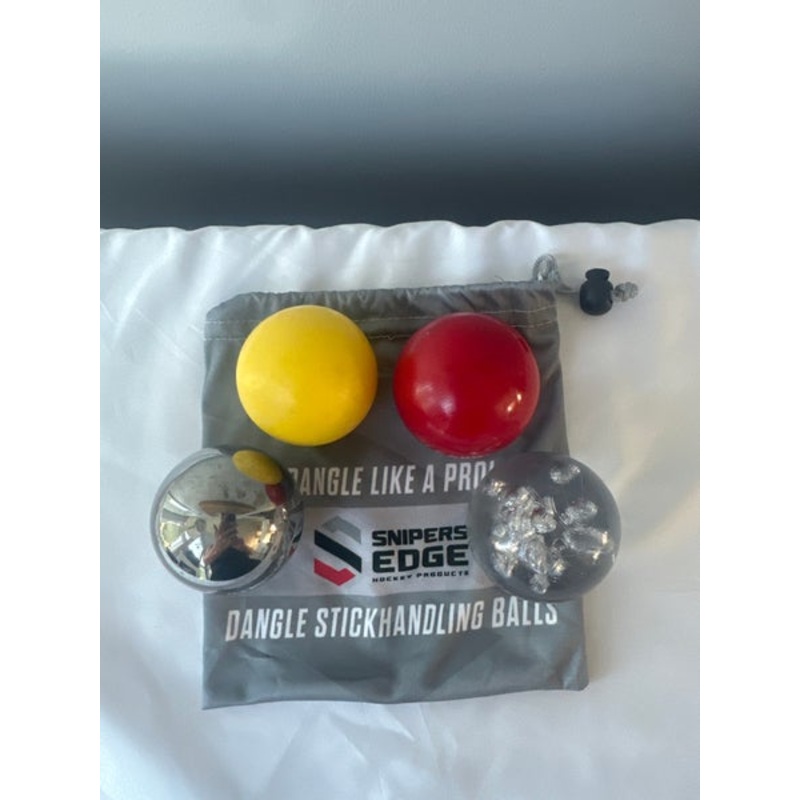 SpecificationsCategoryHockey > Training, Accessories, & Other > Pucks & BallsBrandOtherCondition UsedQuantity1 available|||Seller DescriptionSnipers Edge Hockey Products Dangle Stickhandling Ball Set with Bag