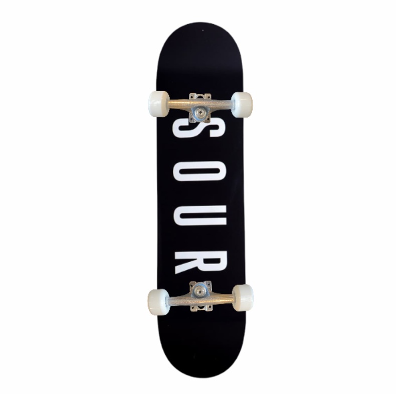 Sour - Army Black Complete 7.75"Snack Pack (Trucks/Wheels/Bearings) - 5.0 (7.25-7.875)Undercarriage set for a skateboardA pair of aluminium trucks with hollow kingpinsMedium strength bushingsCommodore ABEC 3 bearings52mm Picture wheels (100a duro)Pre-assem