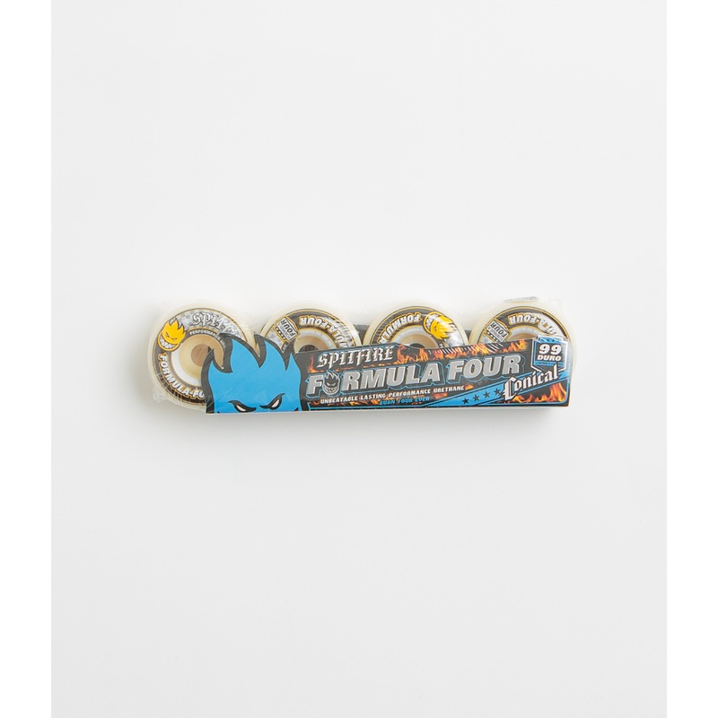 DescriptionSpitfire Formula Four Conical 99DU WheelsBuilt from 100% True Performance Urethane, these Spitfire Conical wheels balance speed, control, and durability. At 56mm with a 99 durometer, they roll fast and smooth while keeping just enough grip where