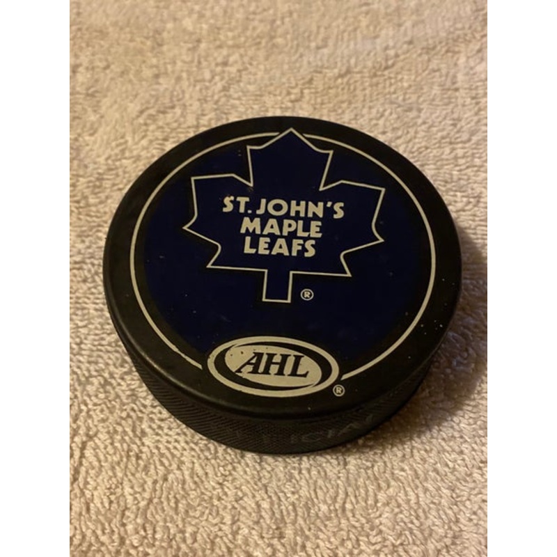 SpecificationsCategoryHockey > Training, Accessories, & Other > Pucks & BallsBrandOtherCondition NewQuantity1 available|||Seller DescriptionNew St. Johns Maple Leafs American Hockey League (AHL) Souvenir Hockey Puck Official Licensed Product