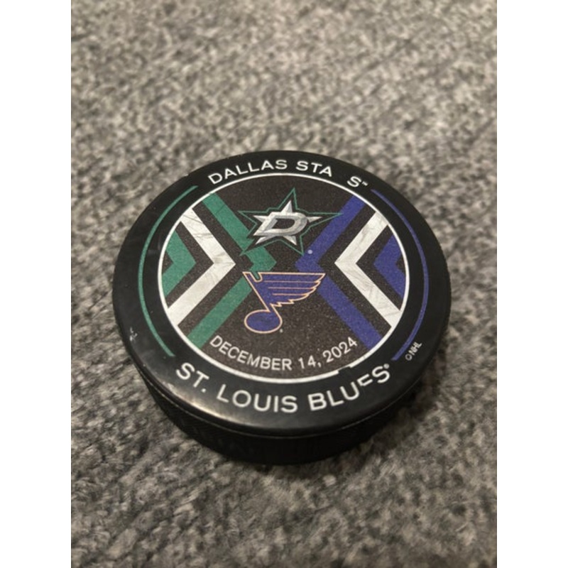 St Louis Blues vs Dallas Stars NHL Match Up Hockey Puck 12/14/2024