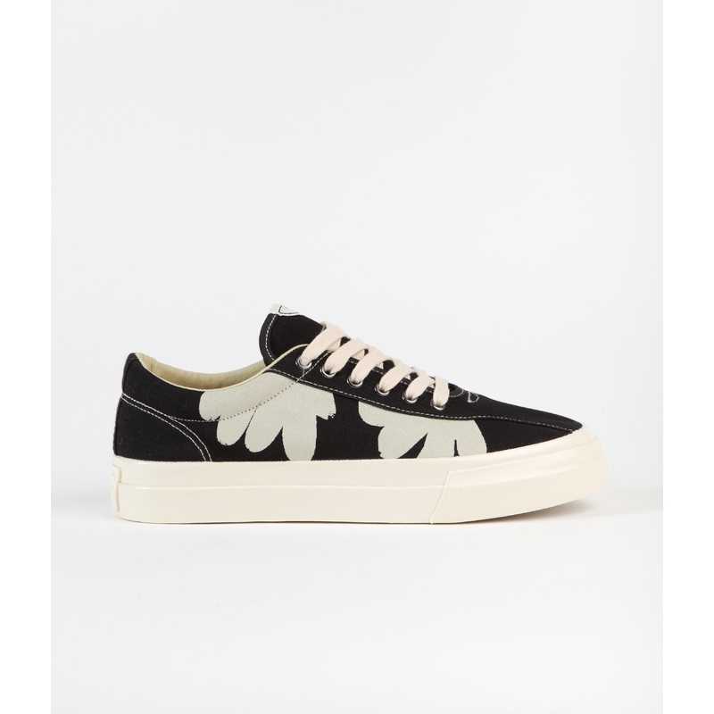 Stepney Workers Club Dellow Shroom Hands Shoes in Black and White. Styled with a floral themed aesthetic and a monochrome colourway, the Stepney Workers Club Dellow in Shroom Hands arrives as a creative take on an iconic silhouette. Featuring cotton drill uppers with hand-drawn printed floral artwork, these low collared sneakers also feature a cushioned sole, a fully vulcanised rubber outsole and an extended foxing wall with tonal auxetic toe bumper trims. A concealed outsole grip delivers a streamlined underfoot finish, whilst the six eyelet lacing system features flat cotton laces that secure the woven tongue in place. Contrast white stitching details each seam, whilst each foot is finished with printed S.W.C insoles, a woven handshake logo tongue patch and with rubberised S.W.C scabs across each heel.
