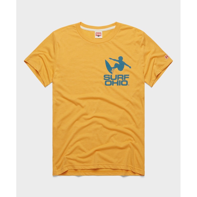 Surfing is the sport, Ohio is the playground, and this tee is a new take on the old favorite. Grab the shirt, and wax up the board for another season of ripping the waves of the Great Lakes and the Oletangy River!