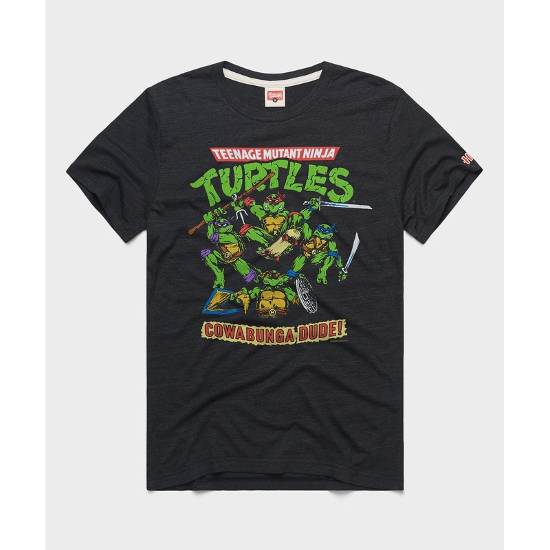 Cowabunga! Grab yourself a slice and set of nunchucks, because its turtle time, party dudes. The heroes in a half shell ruled your world back in the day, and theyre back for more with a super-soft tee thats big on fighting crime (and cheese pizza). Radical.