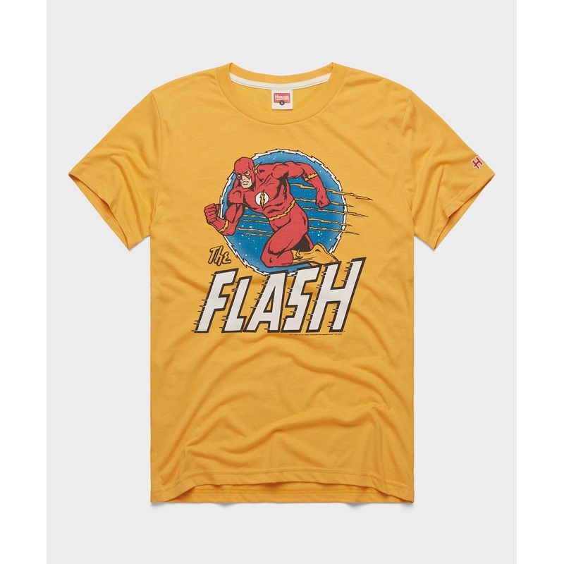 Superhuman speed and reflexes, and the slick outfit to match: theres no hero like Barry Allen, a.k.a The Flash. Rep one of the great comic book eras and the fastest superhero around with a Bronze Age-style super-soft tee for The Flash. Pay homage.