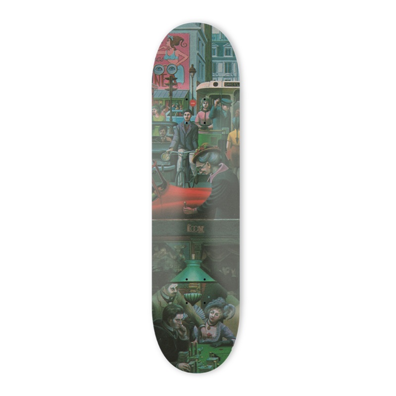The Loose Company | Poker Deck.Medium Concave.7 plies of Canadian Hard Rock Maple.Epoxy Resin Glue for longer rigidity.Single pressed.Sustainably managed forrests.Printed in Germany.4 color CMYK Heat-Transfer print on Bottom.
