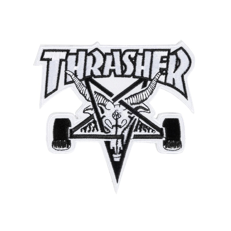 Skategoat logo 4 x 3.5″ twill embroidered patch with iron-on backing.