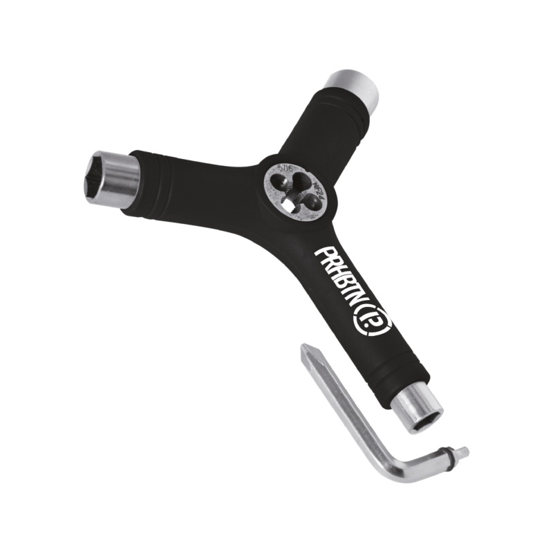THREADER TOOL5/16" Axle threader (Self aligning)9/16" Socket (Kingpin)3/8" Socket (Hardware)1/2" Socket (Axles/ Wheels)Slide-out hardware keyAllen 1/8" keyPhillips #2 screwdriver