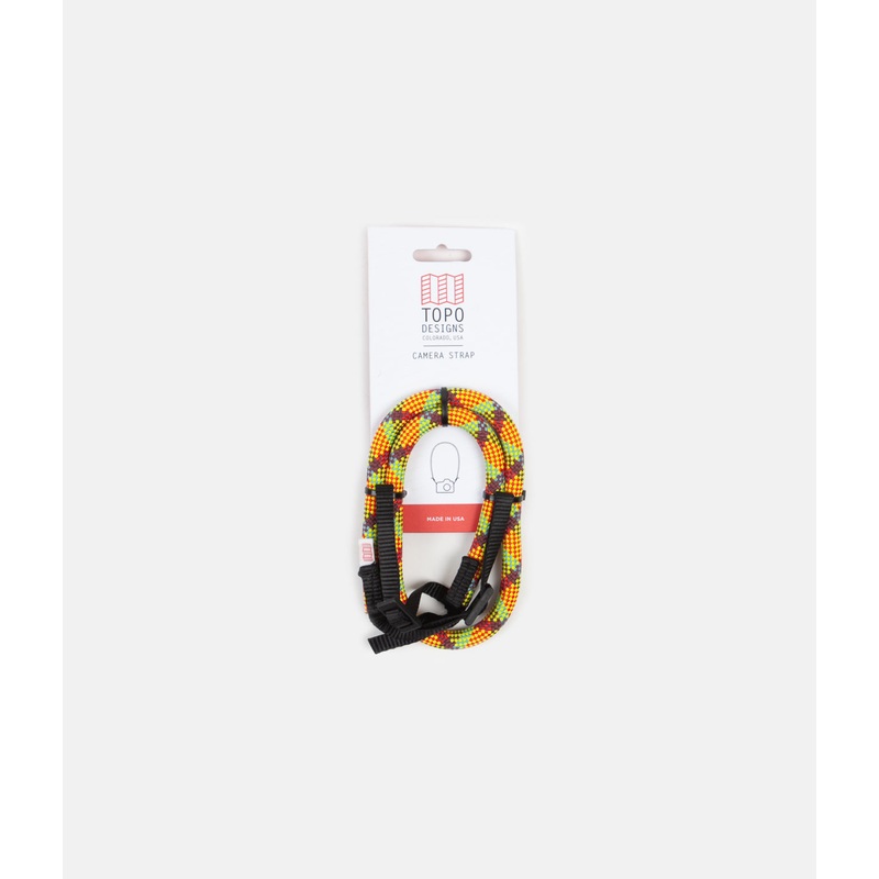 DescriptionTopo Designs Camera StrapSeen here in a vibrant multicoloured colourway, this heavy-duty Camera Strap from Topo Designs was handmade in Colorado from 10.5mm of recycled climbing rope. An ode to the brands mountainous locale and their love of the