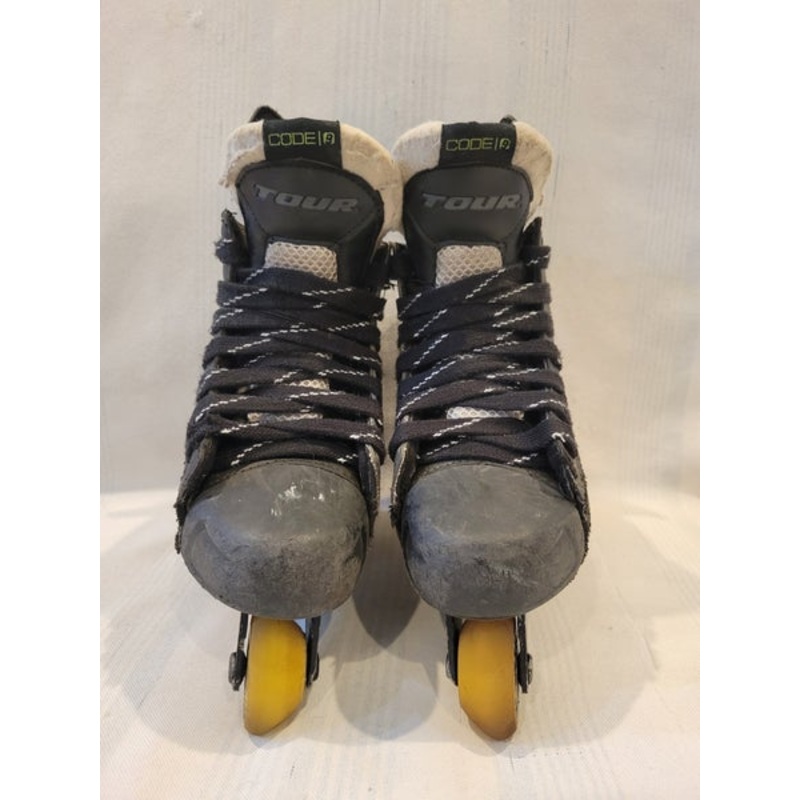SpecificationsCategoryHockey > Inline, Roller & Street > Inline SkatesBrandTourModelCode 9Skate Size 1Age Group JuniorSkate Width D&R (Regular)Condition UsedQuantity1 available|||Seller DescriptionNicely used Tour inline hockey skates size 1