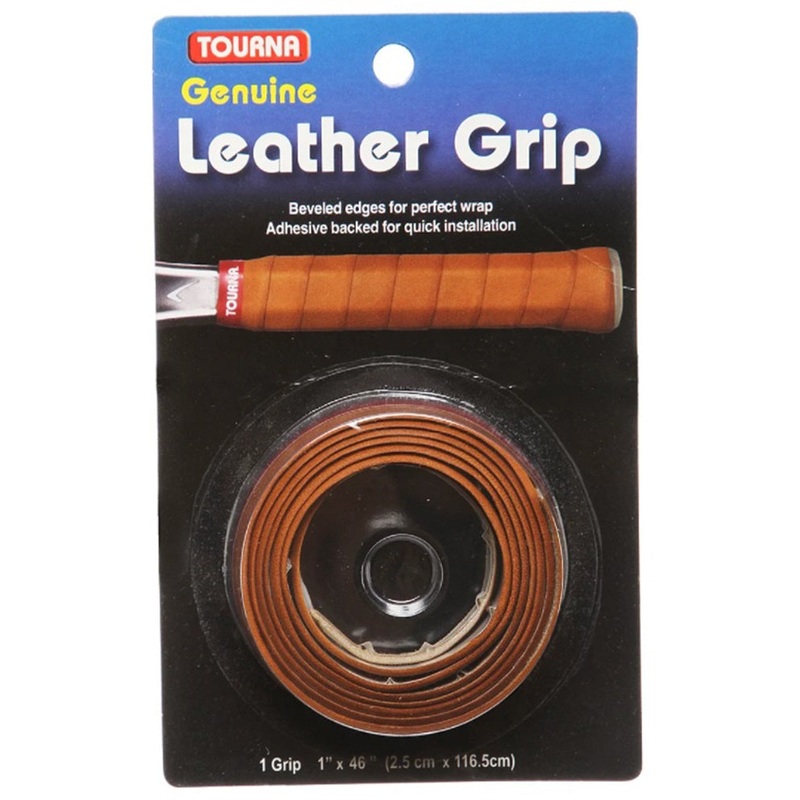 Made with top quality cowhide, the Tourna Leather grip is extremely durable for optimum performance. It is moderately tacky and very firm. This genuine natural grip lets you feel the bevels of your grip edges while delivering a solid firm feel.