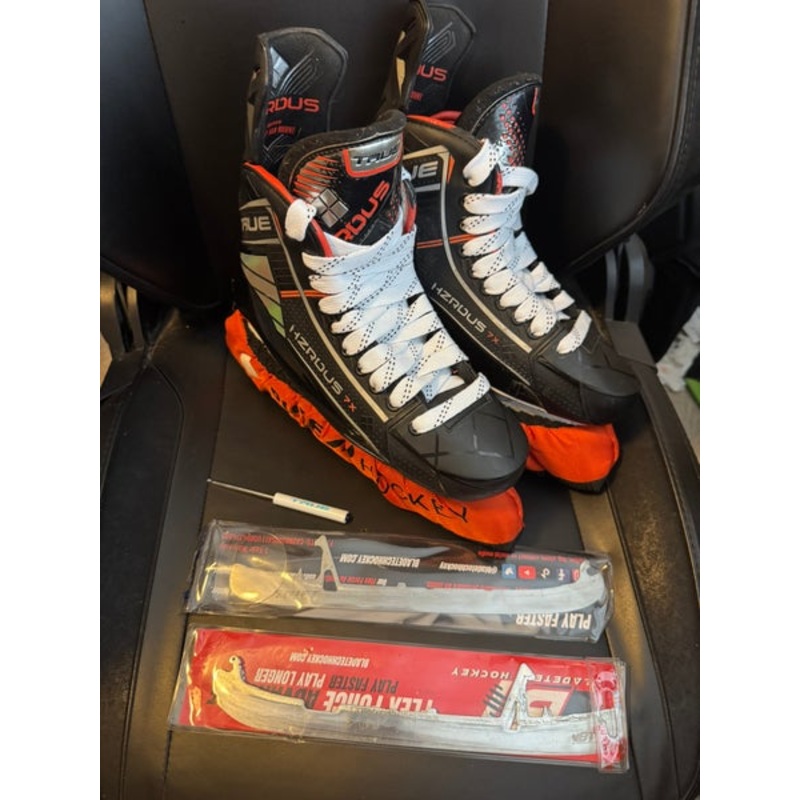 SpecificationsCategoryHockey > SkatesBrandTrueModelHZRDUS 7XSkate Width D&R (Regular)Skate Size Senior - 9Condition UsedRunner Size 280mmPro Stock RetailAge Group SeniorQuantity1 available|||Seller DescriptionUsed for one season of officiating. The