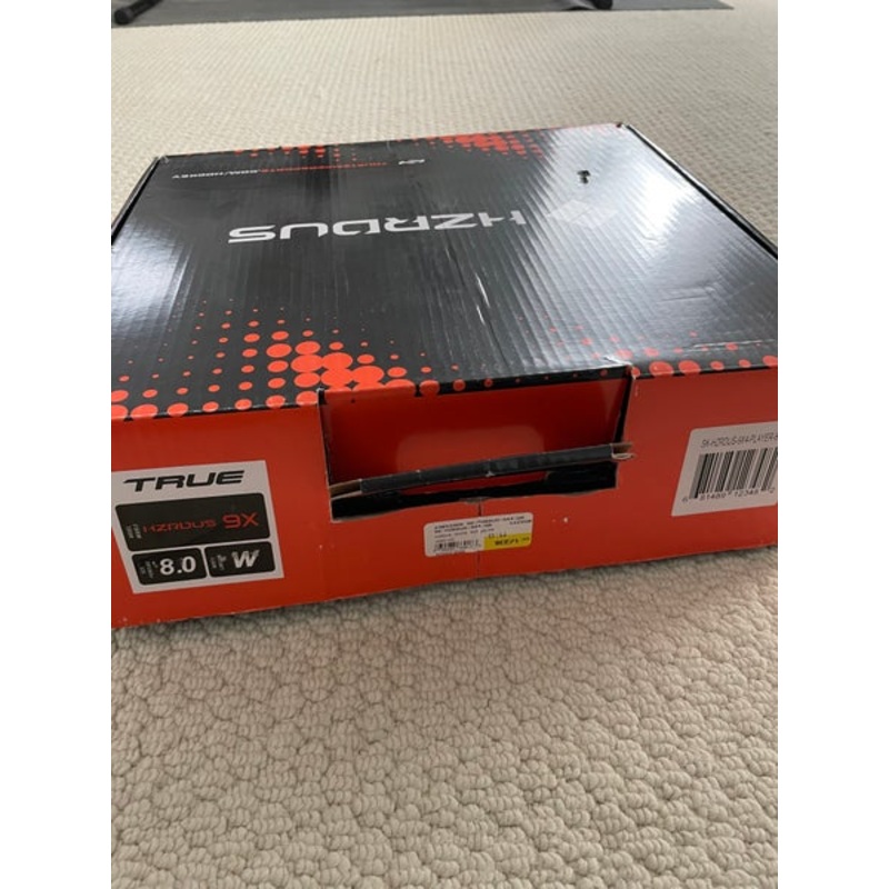 SpecificationsCategoryHockey > SkatesBrandTrueModelHZRDUS 9XSkate Size Senior - 8Skate Width E&W (Wide)Condition UsedPro Stock RetailAge Group SeniorQuantity1 available|||Seller DescriptionTrue hzrdus 9x hockey skates wide, worn for 1/2 a season.|||