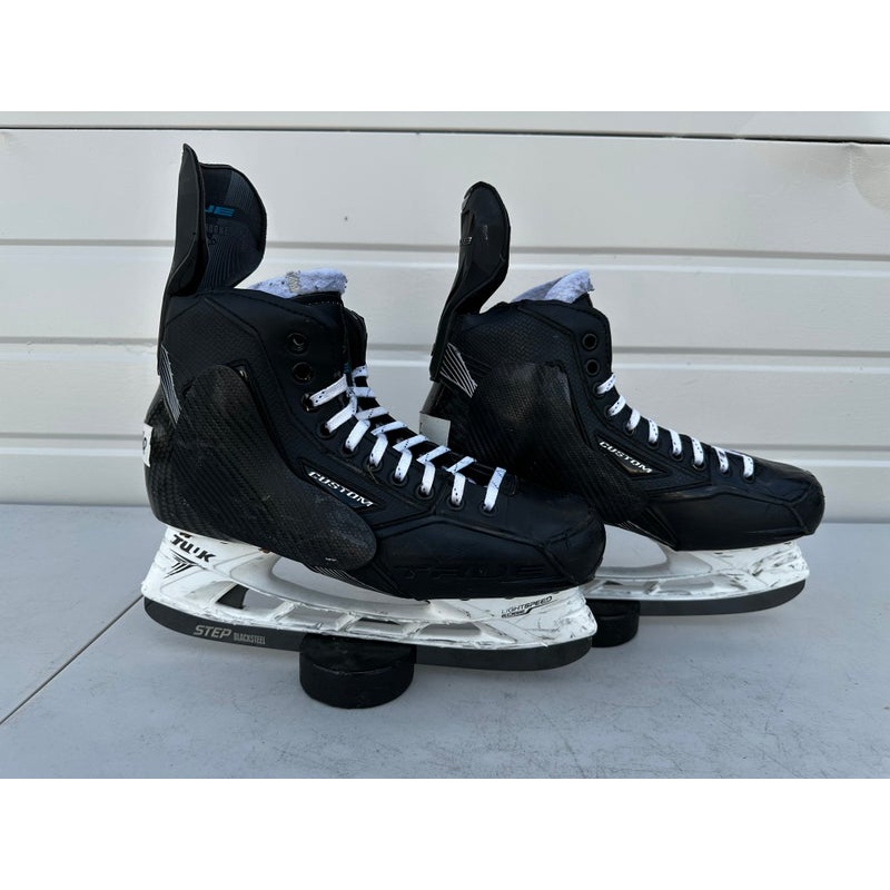 SpecificationsCategoryHockey > SkatesBrandTrueModelPro CustomPro Stock Pro StockSkate Width D&R (Regular)Condition UsedSkate Fit System Regular (CCM)Country of Manufacture Made in CanadaSkate Size Senior - 9Runner Size 280mmAge Group SeniorRelease Y