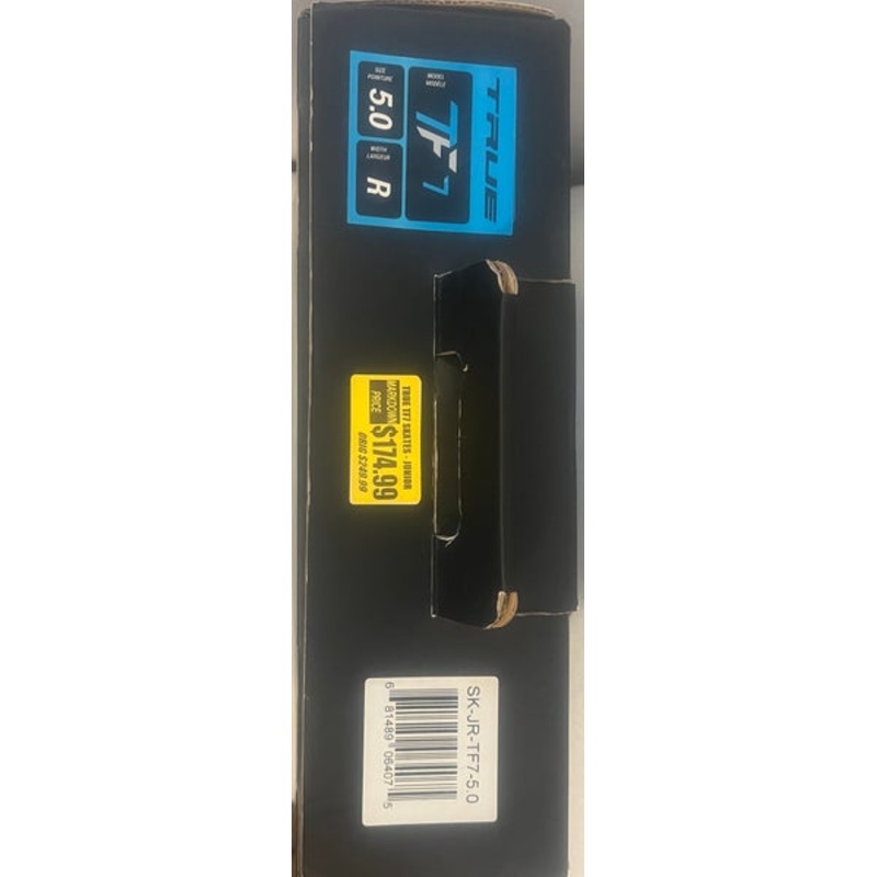 SpecificationsCategoryHockey > SkatesBrandTrueModelTF7Skate Size Intermediate - 5Condition NewRelease Year 2021Skate Width C&N (Narrow)Age Group IntermediateQuantity1 available|||Seller DescriptionBrand new in the box size 5 True TF7 ice hockey skat