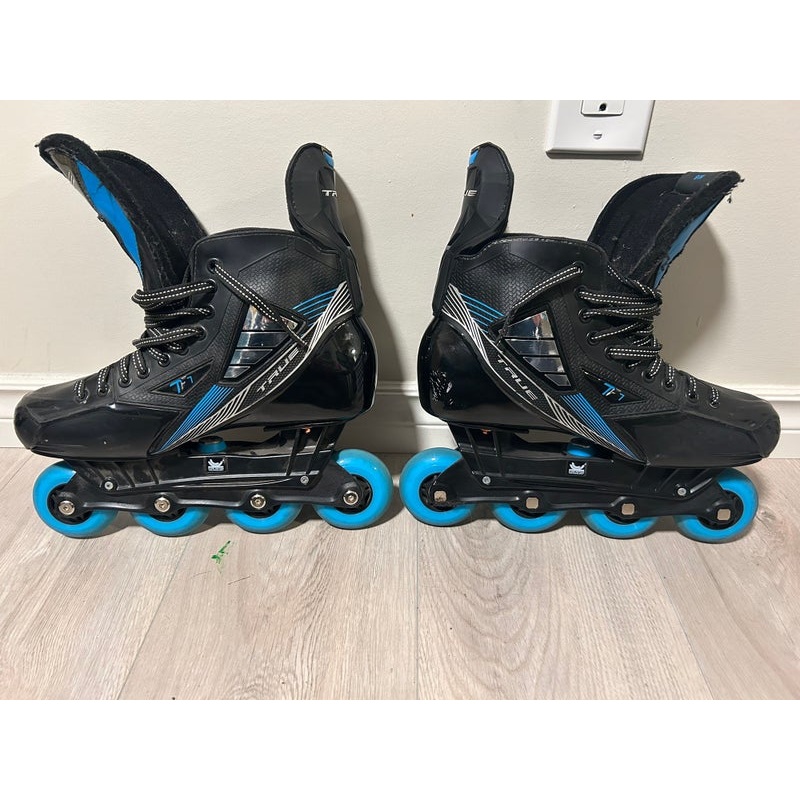 SpecificationsCategoryHockey > Inline, Roller & Street > Inline SkatesBrandTrueModelTF7Age Group SeniorSkate Width EE (Extra Wide)Skate Size 9.0Condition UsedQuantity1 available|||Seller DescriptionGood used condition.