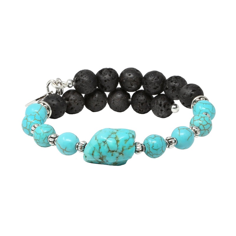 Essential oils are plants’ natural defense systems, and their aromatic qualities can similarly benefit our own emotional and physical wellness. A few drops of oil on the porous lava stone, itself born of fire and loaded with energy, will diffuse the fragrant essence for days. Wearing your Essential Oil Energy Bead Wrap will enable you to keep your chakras aligned and to embrace the healing power of nature.