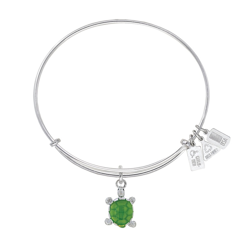 NATURE PERSISTENCE WISDOMThe Turtle is slow and steady, focused on the present yet always moving toward the future. Turtles travel by land or sea, never rushing, gathering wisdom at every turn. Wearing the Turtle Charm Bangle enables you to keep moving for